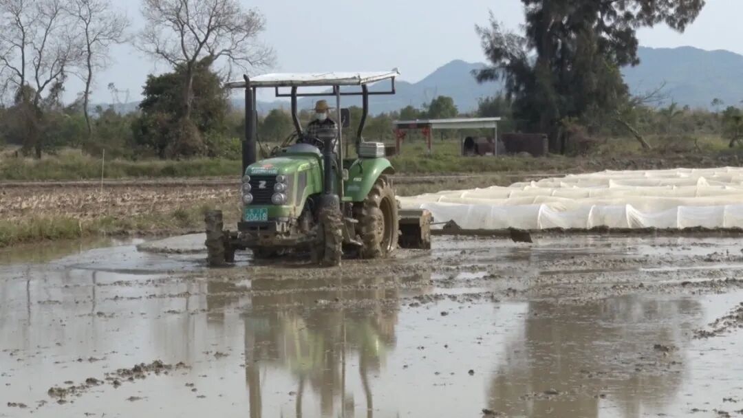 除了管理好番石榴,黎秋怀着手忙春耕,面对疫情不能大面积铺开犁田播种,他便提早谋划,采用机械化的方式,自己一人开垦犁田,播种工作也分批次进行培育秧苗。