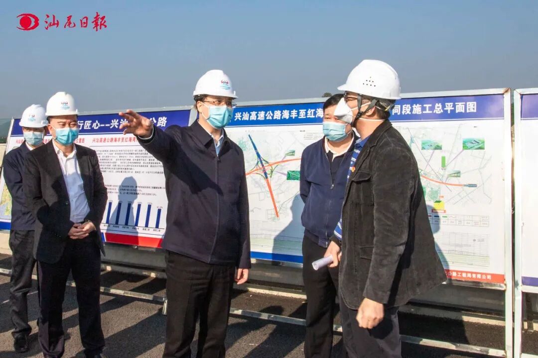 张晓强在汕尾高速公路海丰至红海湾开发区段一期工程调研重点项目复工情况。