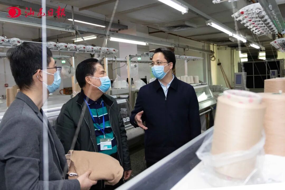 张晓强在万盛针织时装有限公司调研企业复工复产情况。