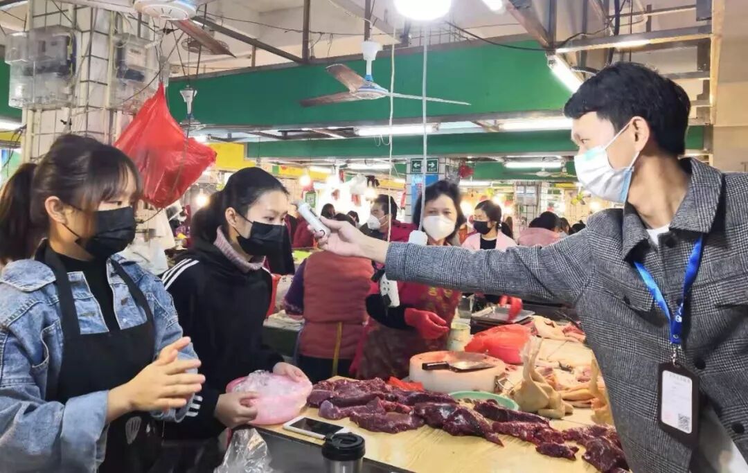 丈夫陈晓捷在农贸市场开展防疫人员排查工作