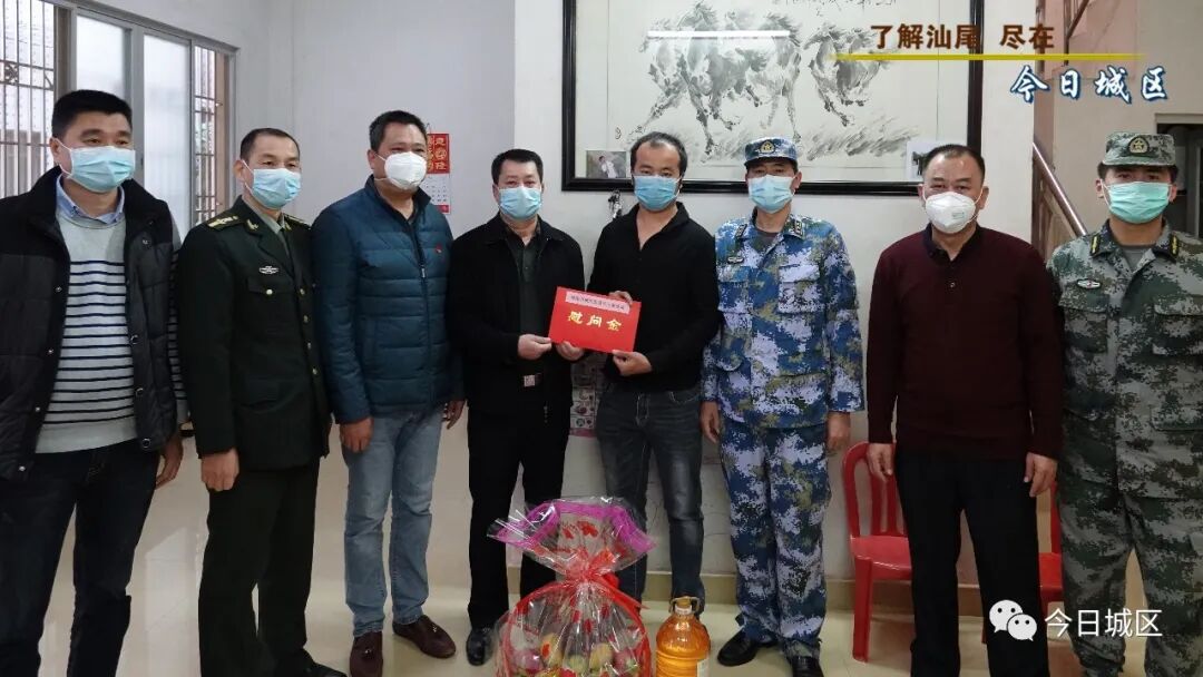 而在背后默默支持、奉献的家属就是战“疫”前线官兵最坚强的后盾,为及时了解并帮助他们解决生活上的实际困难,让人民子弟兵能安心的冲锋前线,服务人民。2月21日,城区人武部联合区退役军人事务局等单位到香洲街道新兴社区颜招俊家中,看望慰问其家属,并为他们送上慰问金和粮油等生活物资。
