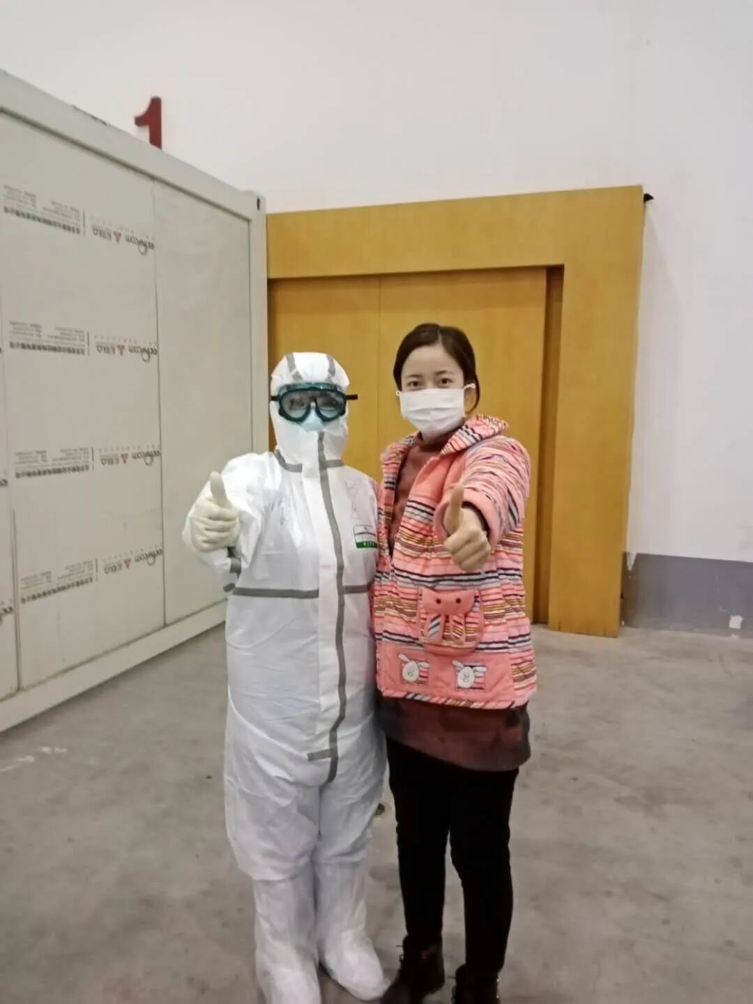 天亮了,跟患者们唠唠嗑、聊聊天。即将出院的患者们,早早就把自己的随身物品整整齐齐地打包好,方便出舱转运。我们像往常一样,给患者测量生命体征,双手递送早饭,对1日出院的患者,把叮嘱的话语又重复了一遍。他们对我们一直来的照顾表示感激,有的紧紧握住我们的手,有的泪眼婆娑道谢……在他们的感谢中,我们也一个个出舱了。出舱时,我忍不住回头望去!心中充满了不舍,充满了胜利的喜悦!一场突如其来的疫情让我们相聚,让我们更加懂得生命的真谛!