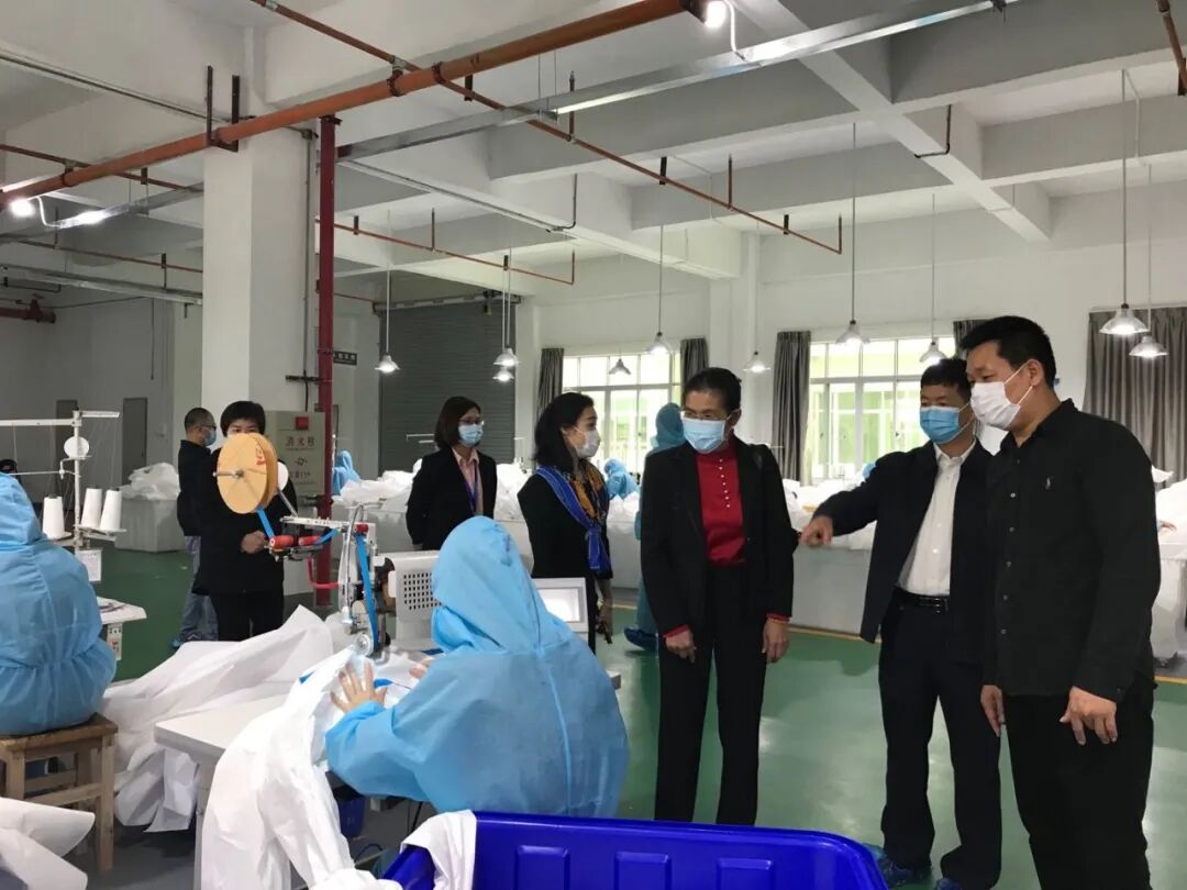 3月5日上午,海丰县人大常委会副主任、县总工会主席叶森一行到海丰县生态科技城内的广东军铠防护科技有限公司、深圳市兆田投资有限公司等企业,组织他们为湖北省荆州市新冠肺炎防控指挥部送去一批防护用品,共同为湖北疫情防控贡献智慧和力量。