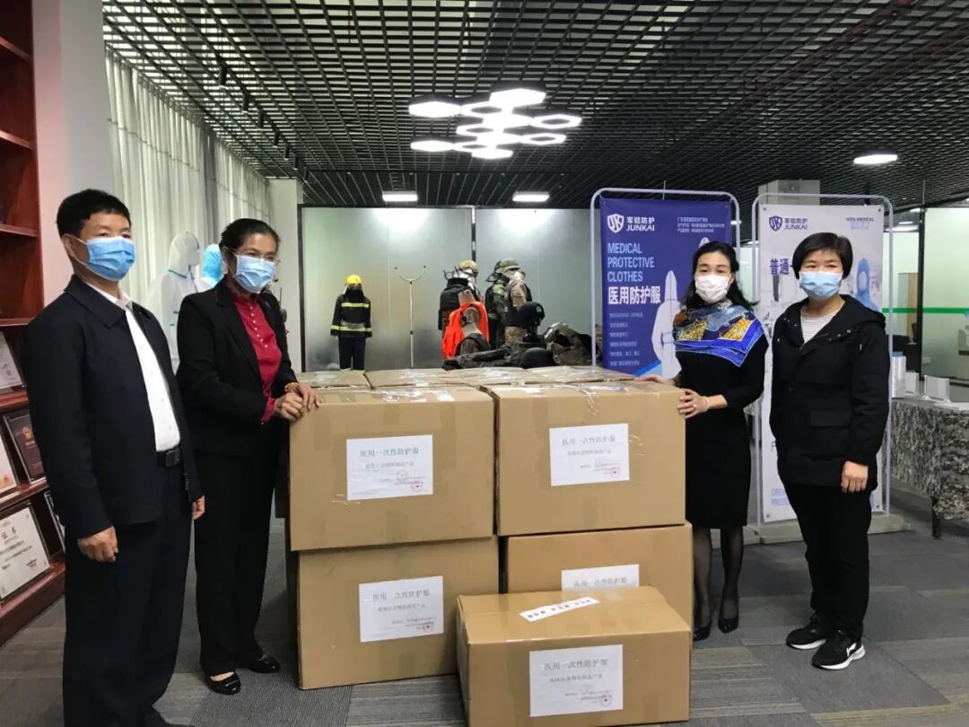 据了解,广东军铠防护科技有限公司成立于2016年,是一家集防弹、防爆类新材料研发、生产、销售、服务于一体的特种防护装备及单兵单警装备的国家高新技术企业,能够充分保障特种防护装备的研发及批量生产。在此次捐赠活动中,他们共捐赠医用一次性防护服300件,隔离服200件,价值共9万元。
