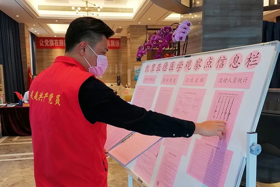 凯里亚德医学观察点最高峰时有33个对象入住,年龄大的五十多岁,小的五六岁,长达14天的集中隔离观察,活动空间都在客房,还有个别对象有高血压等症状,压力可想而知。有个别对象刚到医学观察点的时候有些情绪波动,认为自己无症状,无发烧,不需要隔离观察,曾伟锋同志见状,主动上前跟他们沟通,结合实际例子,向他们讲解了疫情防控的严峻性和必要性,取得他们的理解和支持,从一开始的抵触转变成积极配合工作。