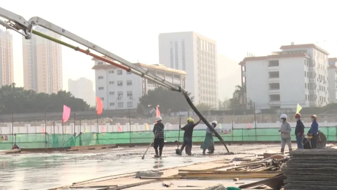 记者走访海丰县重点项目之一的保利集团海德公馆,混凝土搅拌车轰鸣,多个塔吊空中飘拂,建筑工人们来回穿梭,建设现场正“合奏”着一曲复工版的《春天里》。