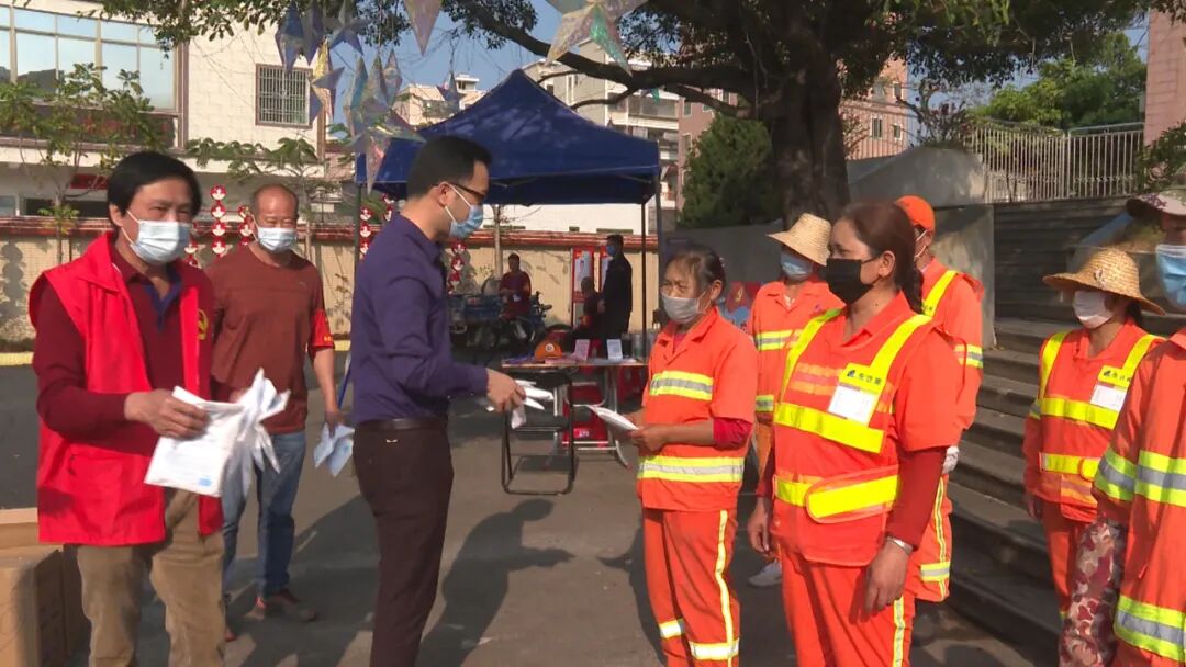 连日来,海丰县新冠肺炎疫情防控指挥部采取措施,为全县环卫工人赠送口罩27860个,洗手液30箱720瓶,为环卫工人抗“疫”筑起安全健康防线。