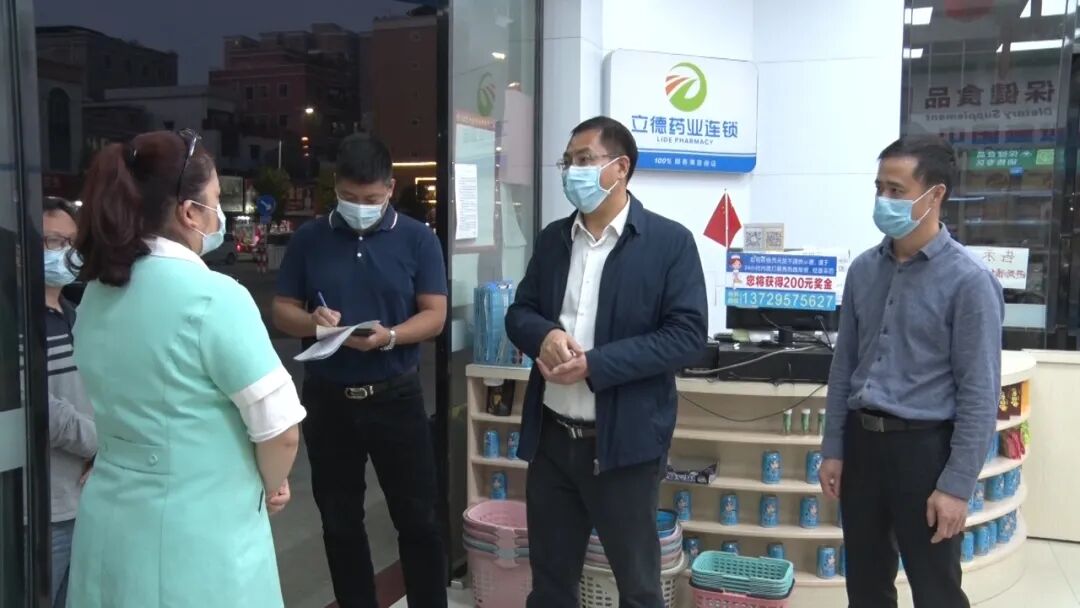 3月22日晚,海丰县委副书记、政法委书记李绪率海丰县疫情防控指挥部办公室、市监等部门负责人到海丰县城部分医药门店调研疫情防控物资供应情况,了解各药店有关防控物资供应、落实粤康码扫码及网上预约口罩等情况。