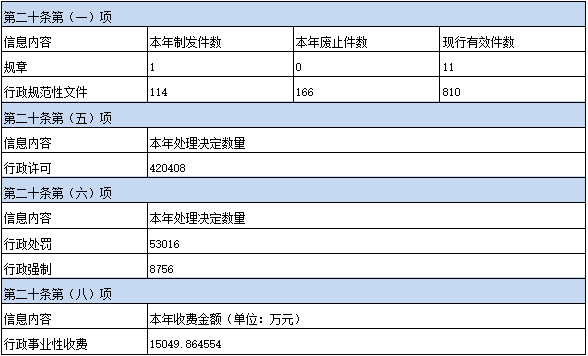 (一)主动公开方面。以提升政府信息透明度为目标,规范发布政府信息法定主动公开内容,深化“五公开”和重点领域政府信息公开,加大财政预决算和“三公”经费、住房保障、环境保护、征地信息、安全生产等领域政府信息公开力度,全面提升信息主动公开工作质效。2025年全市行政许可、行政处罚、行政强制决定数量分别为420408宗、53016宗和8756宗,行政事业性收费总金额1.5049亿元。