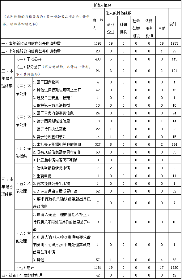 三、收到和处理政府信息公开申请情况