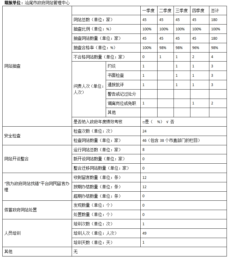 2022年度汕尾市人民政府门户网站监管年度报表