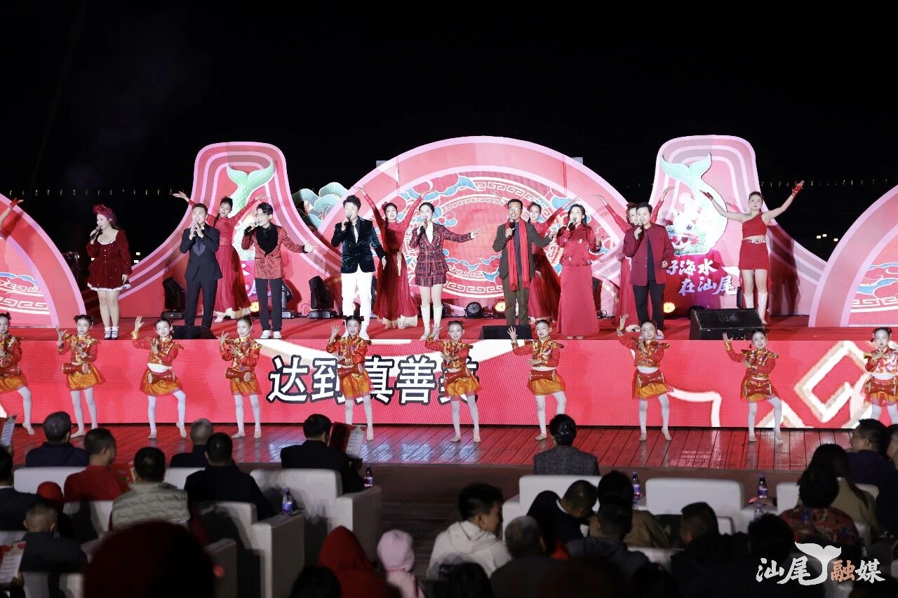 当晚8时,烟花盛会正式拉开帷幕。大型歌舞《请到汕尾过大年》、渔歌舞《渔韵贺岁》、正字戏《赤兔骋春·千里走单骑》、大汕英歌《战舞迎春》等一系列极具广府文化和海陆丰辨识度的精品暖场节目次第登场,汕尾乡音与广府方言传唱歌中,古戏与今曲巧妙融合,乡音醇厚、韵味悠长,生动展示了海陆丰文化的源远根深和多元兼容。