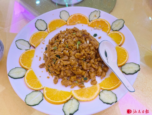 午餐 品清牛腩软烂入味、汤汁浓郁,公平牛肉饼弹牙紧实,猪杂粿条汤鲜爽回甘。白切鸡、卤猪手皮嫩肉香,菜脯煎蛋家常下饭。鼎溜粿、菜茶、咸甜薄饼、陆河油茶等特色小吃齐聚一堂,荤素搭配、口感丰富,既有市井小吃的朴实烟火,又有海陆丰饮食的醇厚底蕴,饱腹又满足。