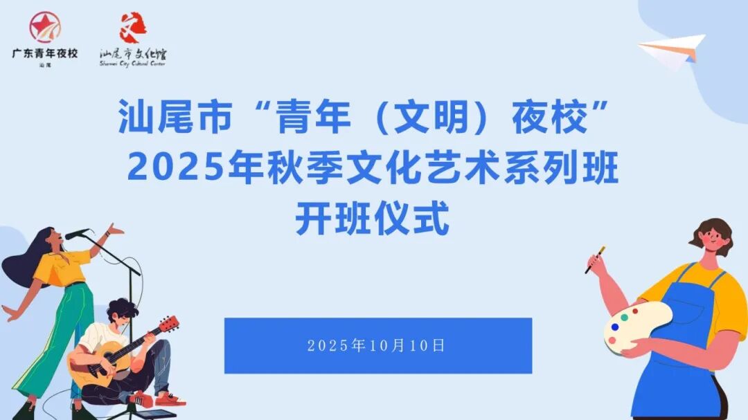 2025年10月10日晚,汕尾市“青年(文明)夜校”2025年秋季文化艺术系列班开班仪式在市文化馆举行。本项目由团市委、市文明办、市文广旅体局和市文化馆联合举办,旨在丰富青年精神文化生活,为青年朋友搭建学习交流平台,助力城市文明建设。