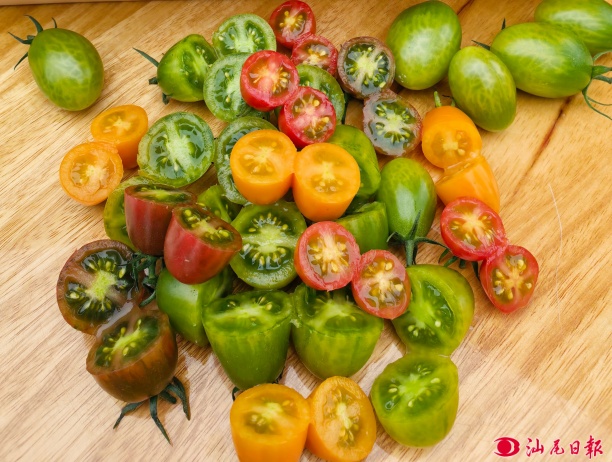 红黄橙粉多彩小番茄。
