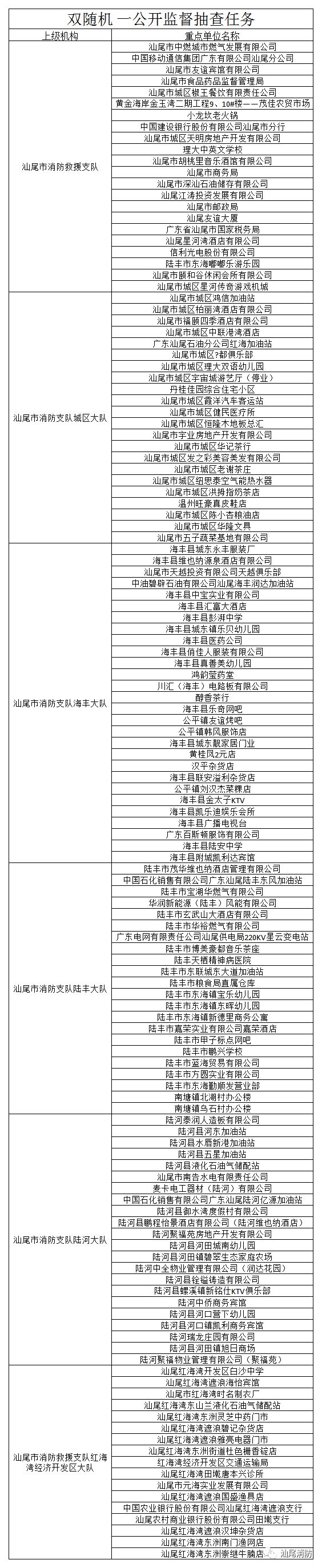 见《广东省消防救援总队“双随机、一公开”抽查事项清单》。