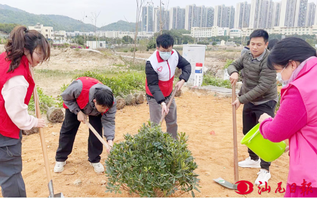 香洲街道组织干群在西洋村开展植绿护绿大行动。