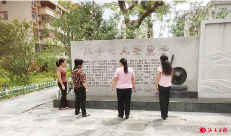 华侨管理区新建的“二十七人开荒牛”人物浮雕景点,逐渐成为激励侨区人民特别是新一代年轻人努力奋斗的教育场所。图为侨区群众自发在浮雕旁的石碑前,重温前辈的奋斗精神,汲取奋进前行的力量。