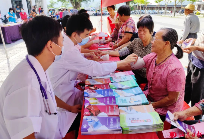 赤坑镇仁家村的树荫下,一支“银发义诊队”正忙碌着。医护人员为老人测量血压、血糖,中医师把脉问诊,理疗师现场演示颈椎保健操。“我有高血压,医生每月上门送药,还教我做手指操。”78岁的陈阿婆边说边跟着节奏活动手指。2024年,海丰县启动“健康护老”行动,组织医疗队进村入户,累计为65岁以上老人免费体检4.76万人次,开展慢性病筛查5.12万例,举办健康讲座60场。针对独居老人,社区还推出“爱心敲门”服务,党员志愿者每日上门探望,送去降压药、代购生活物资,让“空巢”变“暖巢”。