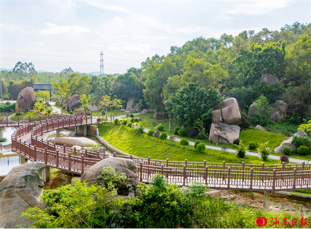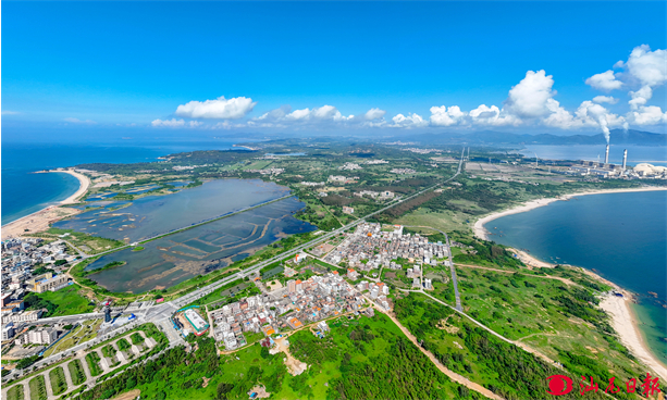 蓝天白云飘逸、山野遍地翠绿、乡村美景如画……漫步在红海湾村道中,空气清新,天蓝水清树绿,令人心旷神怡、精神舒畅,一幅林海相连、蓝绿交融的“高颜值”画卷正在生动铺展。