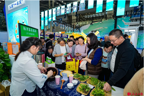 日前,2024全球高端食品及优质农产品(深圳)博览会(下称“深圳食博会”)落下帷幕,汕尾展团精心布置的800平方米展区内,甘薯、丝苗米、茶叶等优质农产品一一亮相,汕尾渔歌、陆河擂茶等特色民俗文化表演轮番登场,吸引往来食客驻足品尝、观看。