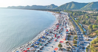广东汕尾陆丰市,金厢银滩游人如织。黄浩阳摄(人民视觉)