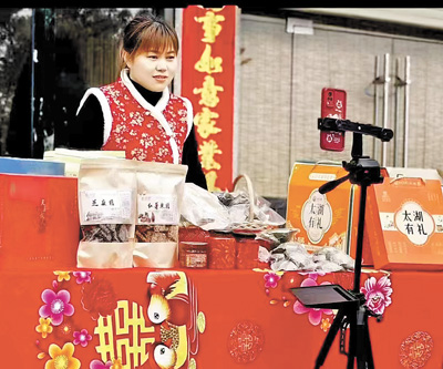 “我们的直播间年货多多,有自家腌制的腊肉、手工红薯米糖,还有用传统方法制作的豆腐乳、腊鱼丁。太湖山美水好,特色农产品的品质也有保证。”安徽安庆太湖县,电商公共服务中心负责人占丽达穿着喜庆,正在直播间介绍本地农产品。