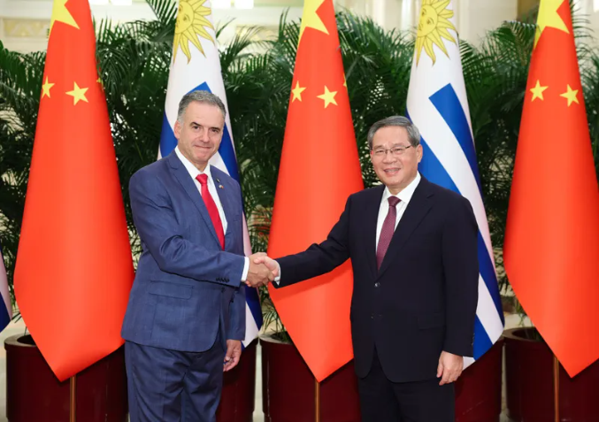 李强指出,中方愿同乌方继续坚持开放共赢,加强发展战略对接和市场联通,深挖各领域合作潜力,进一步发挥互补优势,打造更多务实成果。双方要用好经贸混委会、科技合作混委会等机制,推动双边贸易扩大规模、优化结构,共同推进科技创新、产业创新,拓展人工智能、绿色经济、数字技术、生物医药等领域合作,培育壮大发展新动能。中方愿进口更多乌拉圭优质产品,鼓励有实力的中国企业赴乌投资,希望乌方继续为企业提供良好营商环境。双方还要加强文化、体育、青年、地方、旅游等领域合作,不断增进相互了解和友谊。当前,世界进入新的动荡变革期,单边主义、保护主义甚嚣尘上。中方全力支持乌拉圭担任拉美和加勒比国家共同体、南方共同市场和“77国集团和中国”轮值主席国,愿同乌方密切多边沟通协调,推动提升中拉合作、中国同南方共同市场合作以及南南合作水平,维护多边主义、自由贸易,维护国际秩序和公平正义,捍卫全球南方共同利益。