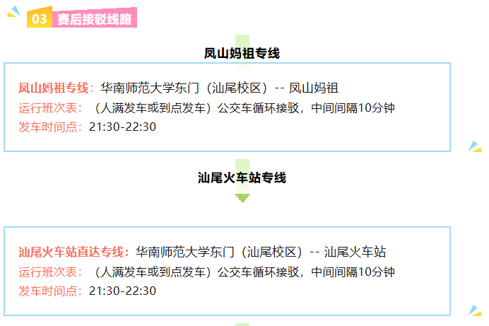 你知道吗?这次汕尾主场特意为所有到场的球迷,准备了共4条赛前赛后接驳专线哦!