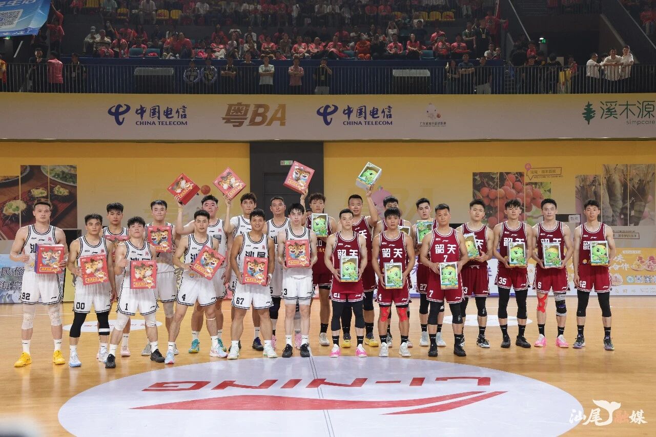粤BA联赛汕尾队主场迎战韶关队的比赛现场,汕尾与韶关两队以礼传情,让山海相逢的情谊为赛场增添了别样暖意。