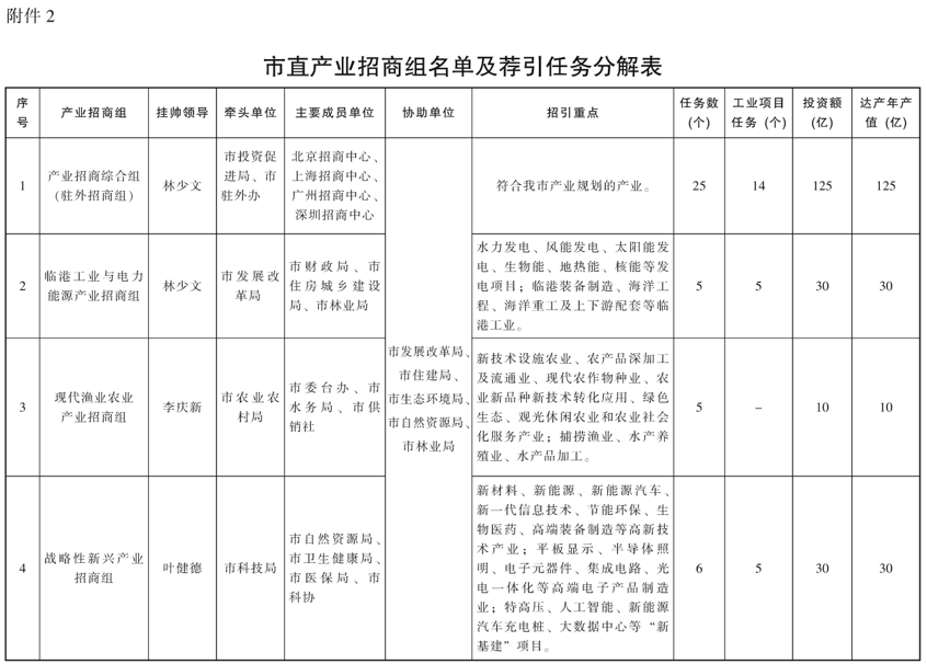 附件:1. 县(市、区)产业招商组名单及任务分解表