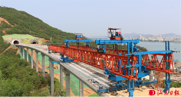汕尾日报讯 (记者 高晴晴 文/图)日前,随着鲤鱼头2号桥左线Z9-Z0跨最后一片预制箱梁平稳精准就位,标志着汕尾市公路事务中心在建的广东滨海旅游公路汕尾品清湖南岸段工程鲤鱼头2号桥左线圆满完成箱梁架设任务。 此次架设的箱梁为30米预应力砼箱梁,长30米、重106.6吨。鲤鱼头左线箱梁的顺利架设为后期各部位有序施工打下了坚实基础,后续将进入鲤鱼头2号桥右线Y0-Y10跨架梁施工以及与桥面系施工的新阶段。 据了解,广东滨海旅游公路汕尾品清湖南岸段工程是中央商务区品清湖片区基础设施中的重要组成部分,作为旅游公路兼具着交通与旅游双重功能,项目建成后,将对串联整合沿海旅游资源,探索绿色交通发展新模式,推进“海洋-海岛-海岸”旅游立体开发,打造广东滨海休闲新名片,促进汕尾市滨海旅游休闲新消费升级具有重要意义。