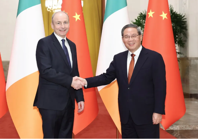 李强表示,昨天,习近平主席同总理先生举行会晤,就深化中爱关系作出战略指引。在中爱共同努力下,两国互惠战略伙伴关系持续走深走实,各领域合作不断取得新的成果。中方愿同爱方一道继续努力,巩固增强政治互信,照顾彼此重大利益和核心关切,高质量推进务实合作,推动双边关系不断迈上新台阶,实现更高水平的互利共赢。