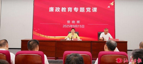 2025年9月15日,市政协主席曾晓晖在市廉政教育基地为市政协机关党员、干部讲授廉政教育专题党课。