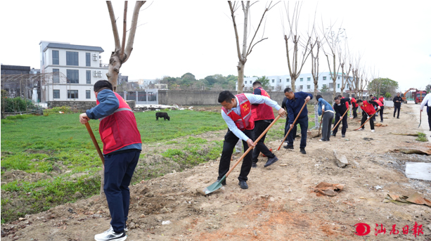 参与活动的党员干部们先后到东二村和新围村,为联建村提供了20棵芒果树苗,同时在新围村种植10棵小芭乐树、30棵黄花梨;在东二村种植40棵桢南树,共计100棵树。大家干劲十足,有的挥锹铲土,有的扶苗填坑,有的浇水灌溉,各个环节衔接有序,配合默契,充分展现了团结协作、积极向上的精神风貌。
