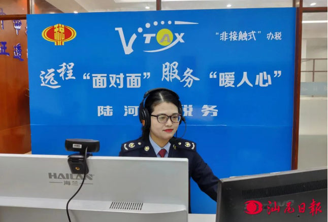 图为国家税务总局陆河县税务局工作人员正在线上进行远程服务。