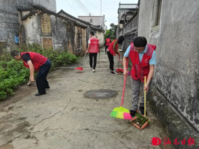 图 河口镇志愿者在大街小巷清扫垃圾。