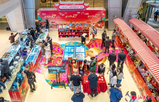 时值春节前夕,国贸商城内采购氛围正浓。活动现场通过产品展销、现场体验和线上线下联动等方式,集中呈现了汕尾的特色农产品、海鲜美食、珠宝首饰与非遗文化。在“璀璨汕尾”展区内,由天然水晶、24k金、松石、红宝石、碧玺等材质制成的耳环、胸针、项圈、手镯等商品琳琅满目,吸引不少顾客驻足观赏。“鲜美汕尾”展区同样热闹,清甜多汁的红宝石芭乐、回甘清爽的鲜油柑及油柑汁、脆爽香甜的莲雾等水果,赢得众多消费者青睐。在“好玩汕尾”展区内,悠扬渔歌与擂茶研磨声此起彼伏,麒麟、土叽咕等周边文创产品精巧别致,吸引观众拍照打卡,于体验中感受汕尾深厚的人文底蕴。Olé超市内特设的“海鲜主题馆”更是人气十足,汕尾鱼丸以及来自汕尾海域产的生蚝、海胆、海参、小青龙等海产品陈列整齐,开放式厨房里飘出阵阵香气,引得顾客纷纷品尝夸赞,“好海水 在汕尾”得到了更好的印证。