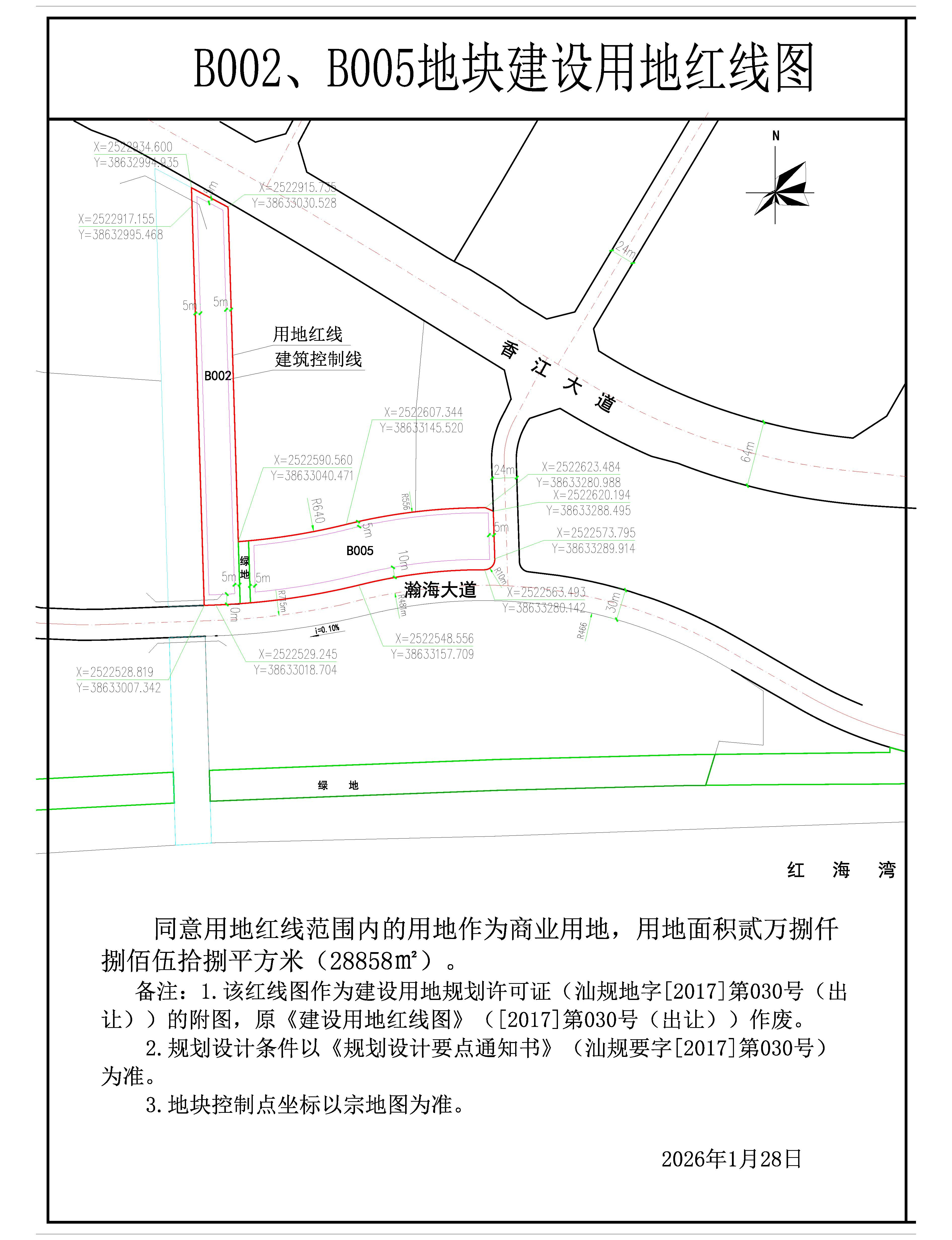 土地用途:B002和B005地块商业用地;B011地块商业用地兼容30%二类城镇住宅用地。
