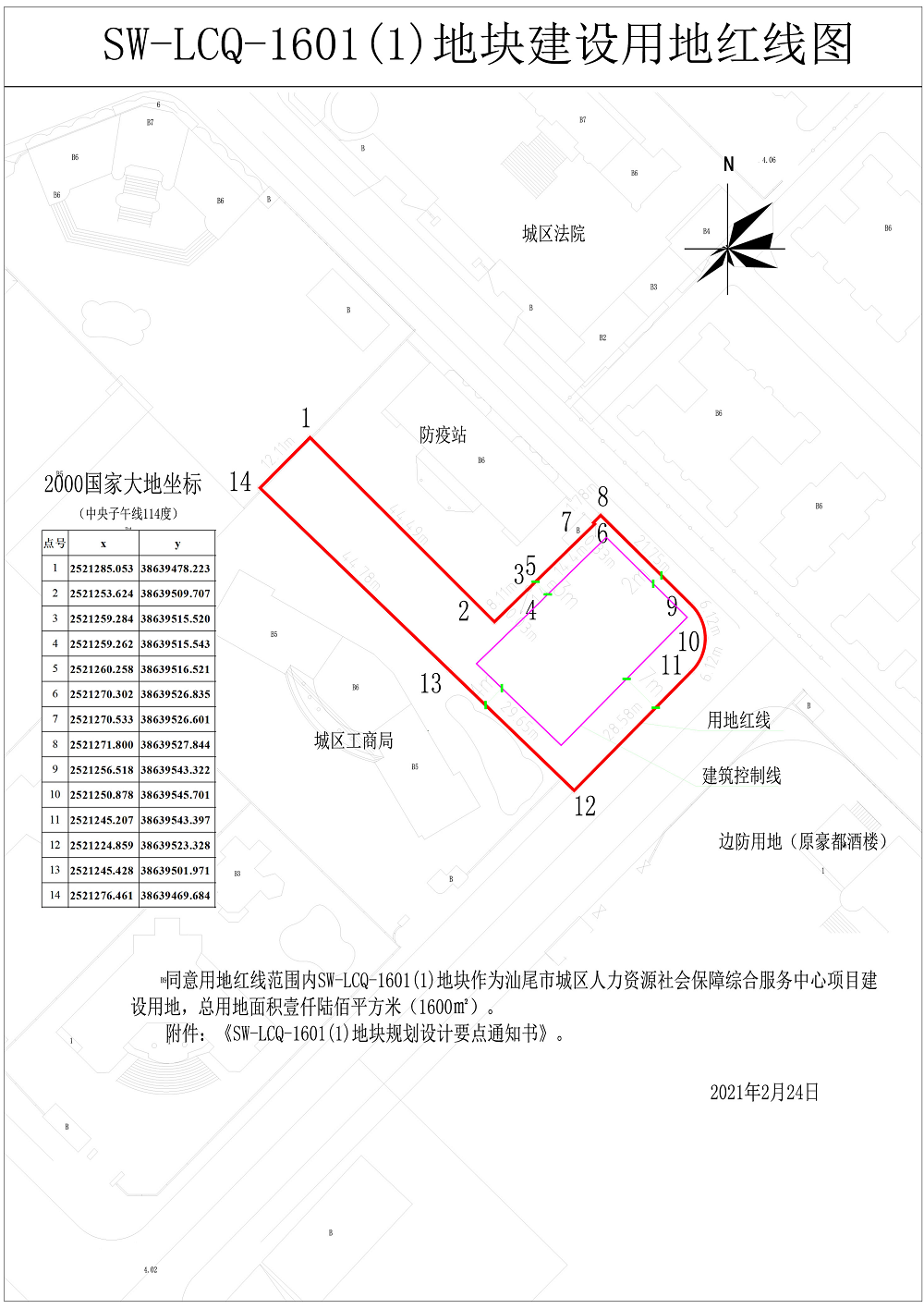 本局收到汕尾市城区人力资源和社会保障局办理建设用地规划许可证(调整)的申请及有关材料,用地面积由1962㎡调整为1600㎡。依照《广东省城乡规划条例》第二十九条的有关规定,现对相关事项公示如下: