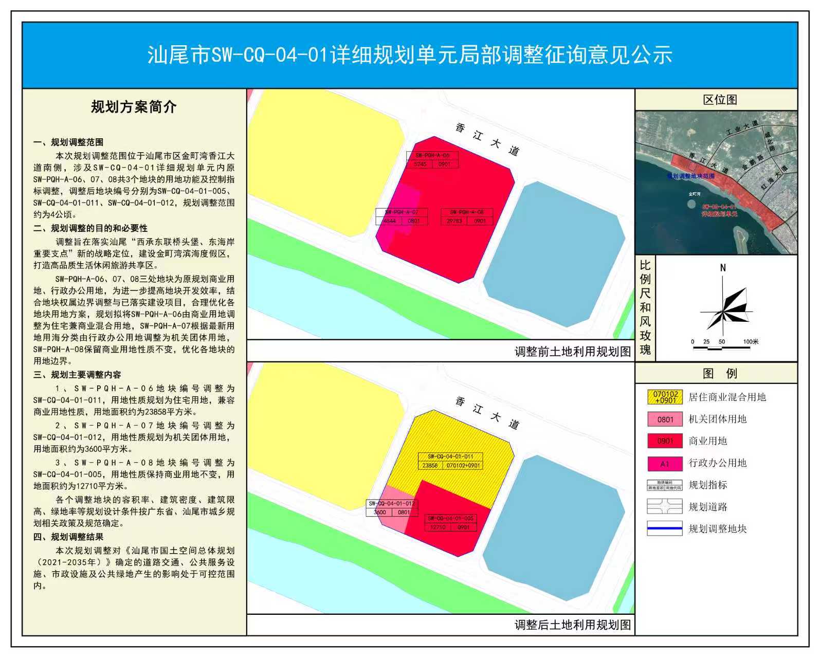 附件:《汕尾市SW-CQ-04-01详细规划单元局部调整(征求意见稿)》公示图