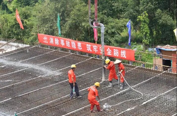 为确保桥梁施工进度和外观质量,施工人员避开白天高温时段,选择在温度较低的凌晨进行混凝土浇筑,并由技术人员对混凝土搅拌、运输和浇筑实行全过程监控。经过10多小时的奋战,该桥最后一孔梁约250方混凝土顺利完成浇筑。