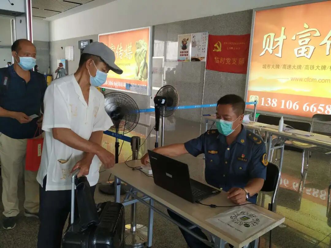 郭子荣介绍道:“这里是外来人员进入潮阳的重要关口,人流也相对密集。我们要做好测温、登记旅客身份信息的工作。每天下午五六点是旅客到站的高峰期。为避免人员聚集,尽量减少旅客停留时间,我们会分组进行身份信息登记。遇到情绪上出现波动的旅客,我们会先进行安抚再迅速完成登记工作。”