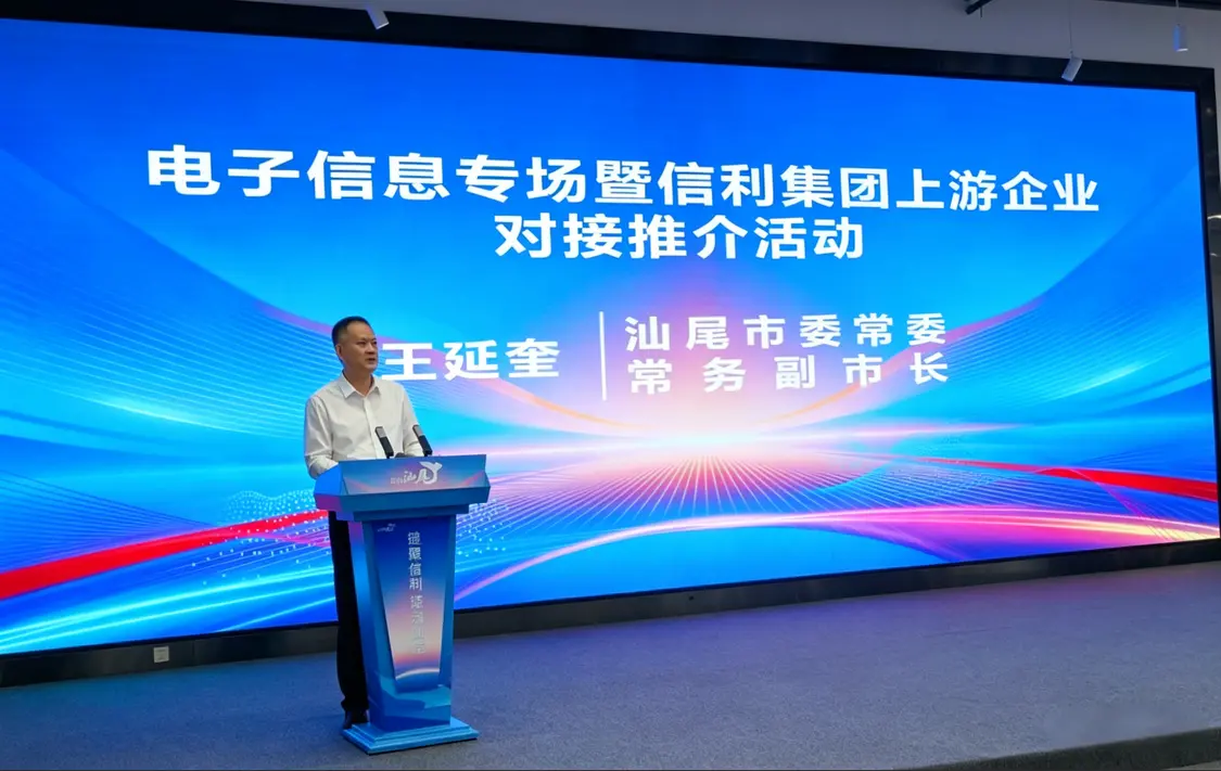 4月15日,“链聚信利·链动汕尾”电子信息专场暨信利集团上游企业对接推介活动在汕尾市招商中心举行。本次活动由中共汕尾市委人才工作领导小组办公室、市工信局、市投促局等单位联合主办,旨在立足汕尾电子信息产业基础,精准对接信利集团上游优质供应商,搭建产业链、供应链、人才链深度融合的交流平台,吹响了汕尾打造东海岸高端电子信息产业基地的“集结号”。
