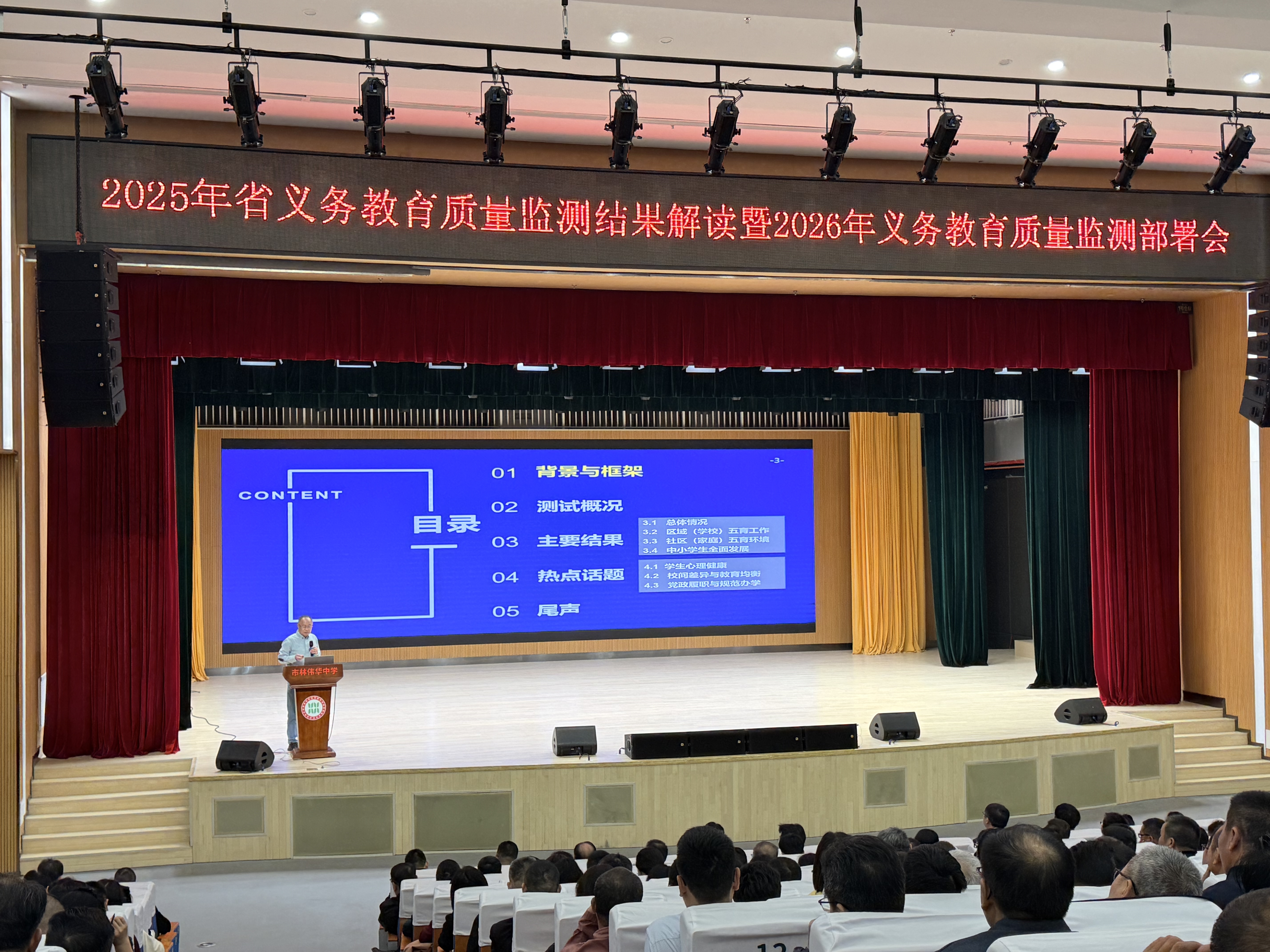 会上,刘坚教授全面解读分析了我市2025年义务教育质量监测情况,既客观呈现成绩亮点,更直指我市存在的学业水平差距明显、区域发展不均衡、五育并举有短板等关键症结,并提出针对性改进路径。会议同时部署了2026年全市义务教育质量监测实施工作,解读了基础教育课程教学改革深化行动项目。