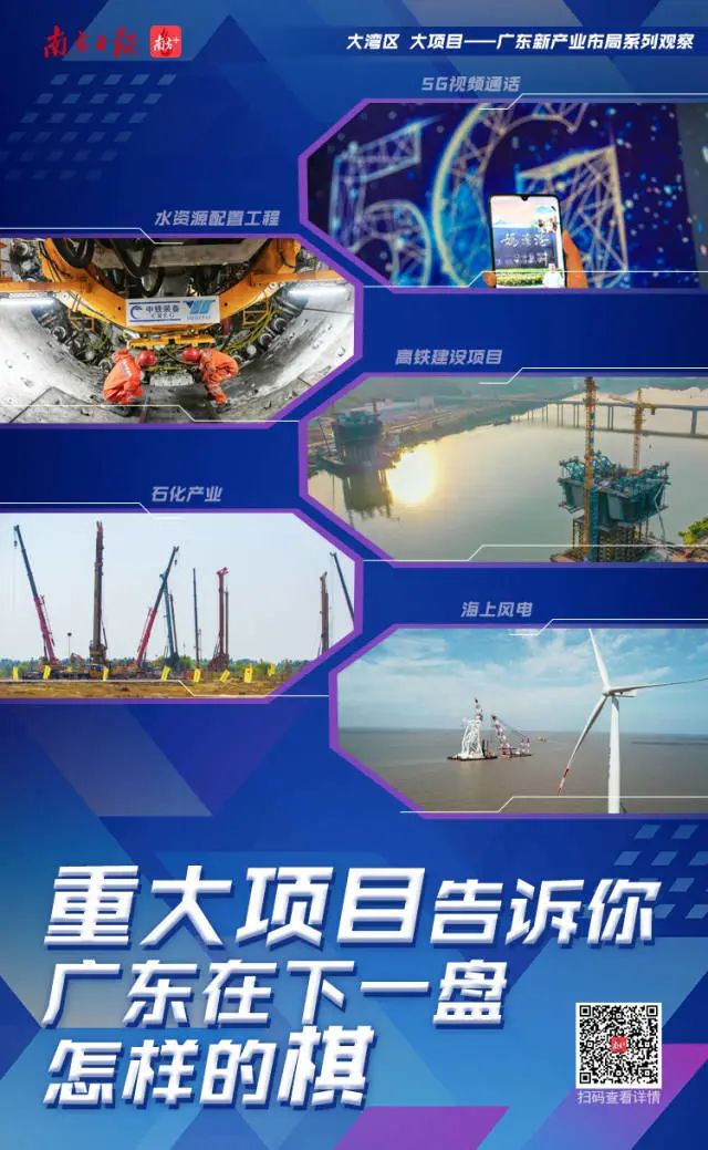 总投资达百亿美元级的埃克森美孚广东惠州乙烯项目、巴斯夫(广东)一体化基地相继落地,背后是不断调整优化形成的沿海石化产业带。三江连通工程、珠江三角洲水资源配置工程、环北部湾(粤西)水资源配置工程三大“超级工程”背后,是广东大手笔投资重塑水资源配置新版图。广汕汕高铁、广湛高铁、赣深高铁等时速350公里高铁项目,纵贯珠三角与东西两翼,带来区域间创新生产要素的重新分配。海上风电产业发展驶入“快车道”,新一轮海上风电智能制造大幕从三年前已在南海之滨拉开。5G引领新一轮“新基建”投资,并革新工业链条,重新定义大数据时代下的世界竞争格局。一个个重大工程就像无数个超级引擎,不仅是稳投资、促增长的“压舱石”,也在加快补齐广东高质量发展的短板和弱项,拉开增强长远发展后劲的战略布局。“大湾区·大项目”——广东新产业布局系列观察,带你走进这些重大项目建设现场,透视重大项目建设背后的发展新布局。放眼全球产业版图,5G是世界各国信息智能时代的竞争制高点。