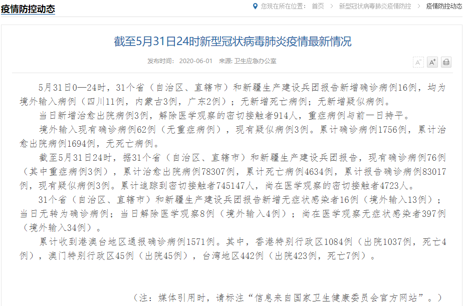 国家卫健委:新增确诊16例,均为境外输入