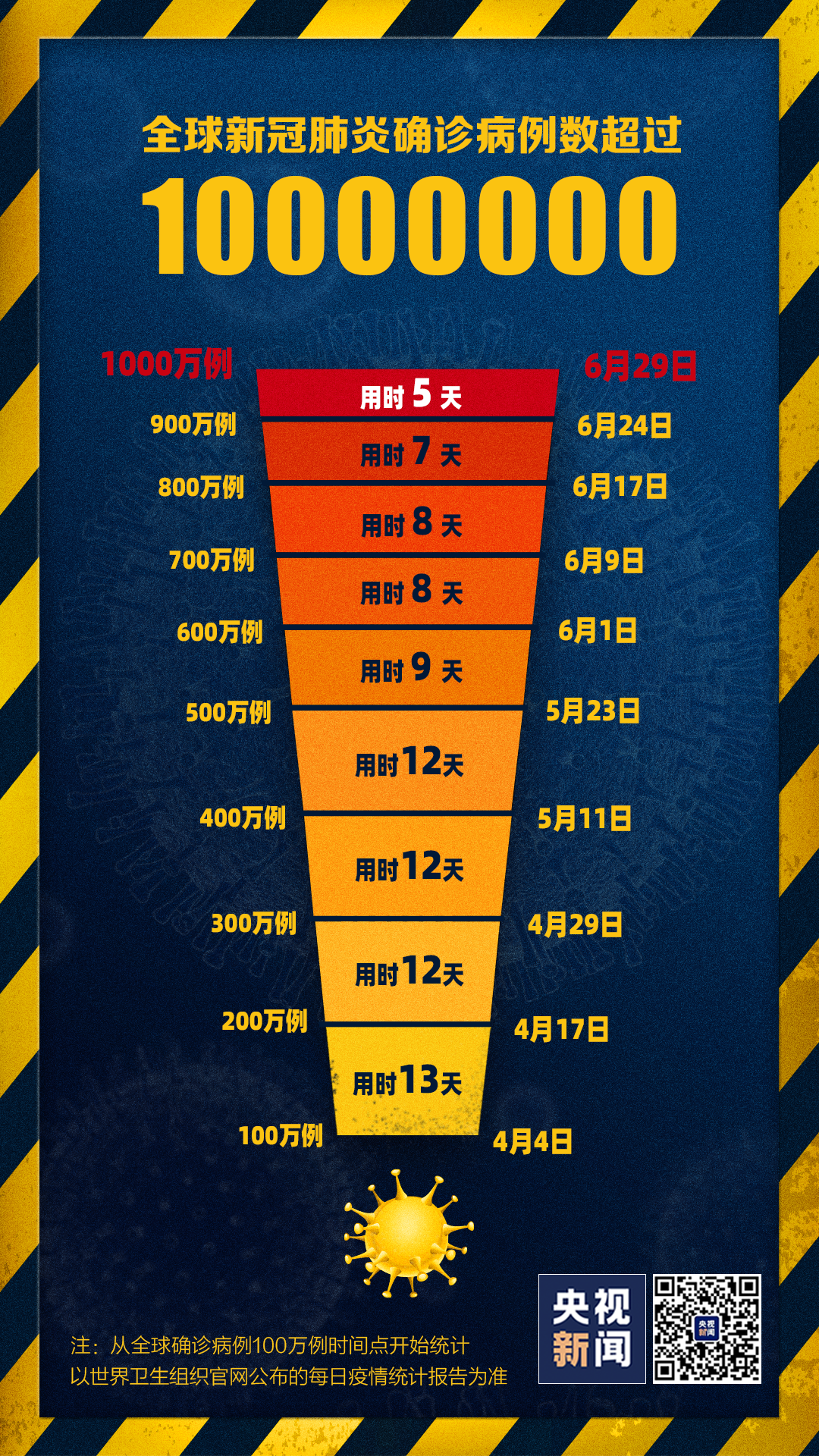 全球确诊病例从1000万到2000万时间会更短
