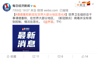 张文宏: 今天的人工智能如日中天,但这次中国疫情的控制,是靠传统的智慧和城市的管理来实现的。包括这次人工智能迅速跟上疫苗的靶位预测、序列检测速度的跟进、药物靶标的发现,但是时间过去6个月了,事实上中国的疫情已经结束,我们现在造的所有的药物和疫苗都是为未来而造。 张文宏判断“中国的疫情已经结束”,那在世界范围内,疫情又怎样呢? 世界卫生组织总干事谭德塞称,在世界大部分地区,(新冠肺炎)病毒并没有得到控制,情况在恶化。 听到北京防疫CNN主播表情冲上热搜 近日,CNN记者介绍北京防疫情况时,女主播的表情亮了。
