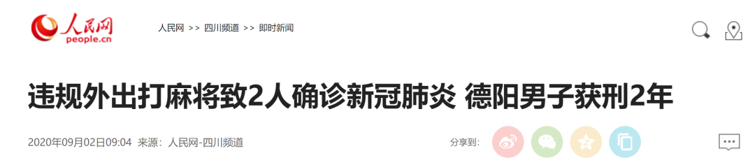 新冠肺炎疫情暴发后,四川省德阳市旌阳区黄许镇宏山村村民郭某某违反规定,聚众打麻将。结果自己被确诊为新冠肺炎患者,还导致两人被传染,120名密切接触者被强制医学隔离,其所在村庄全村封闭。